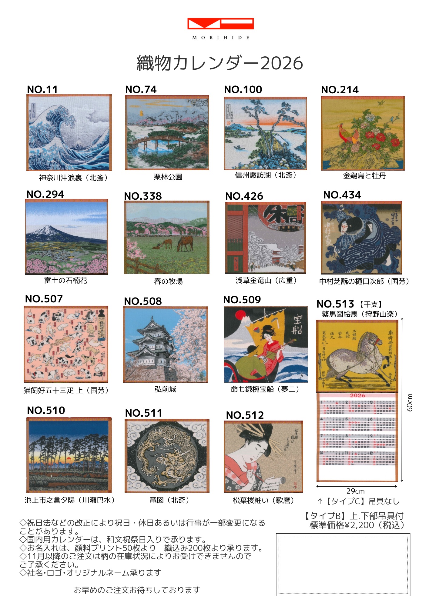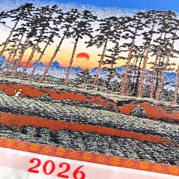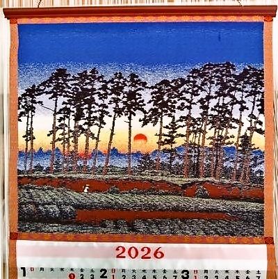 織物で表現された、壁掛けカレンダー 一年間飾った後は数字部分を外して絵画としても楽しめます 伝統的な日本の織物技術で織られる 浮世絵 美人画 伝統画 風景画をお選びください