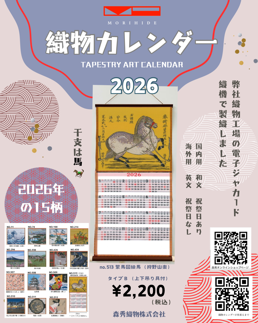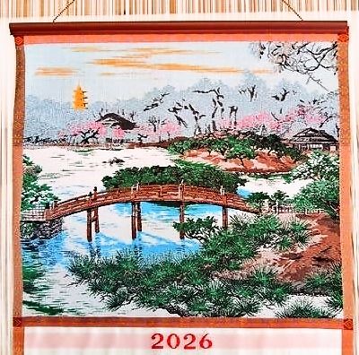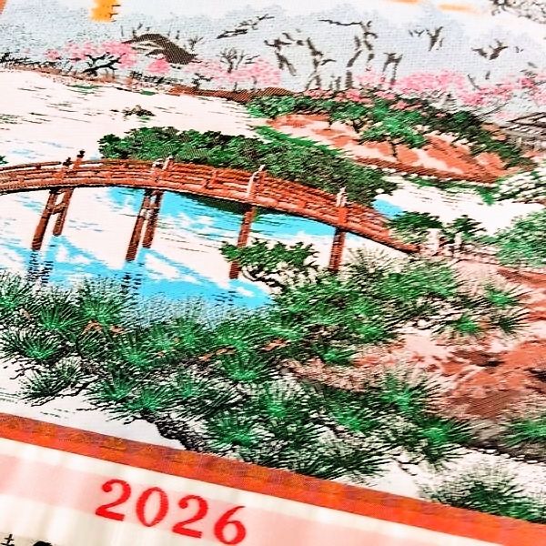 織物で表現された、壁掛けカレンダー 一年間飾った後は数字部分を外して絵画としても楽しめます 伝統的な日本の織物技術で織られる 浮世絵 美人画 伝統画 風景画をお選びください