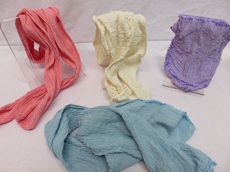 昔は、機やさんで従業員も職人も着物地の端切れで体洗ってツルツルになってたな〜特に御召生地が最高なんだ! 職人の何気ない会話から始まった、御召アカスリ復活。
