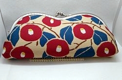 織物がま口メガネ入れ 夢二椿柄 ベージュ
