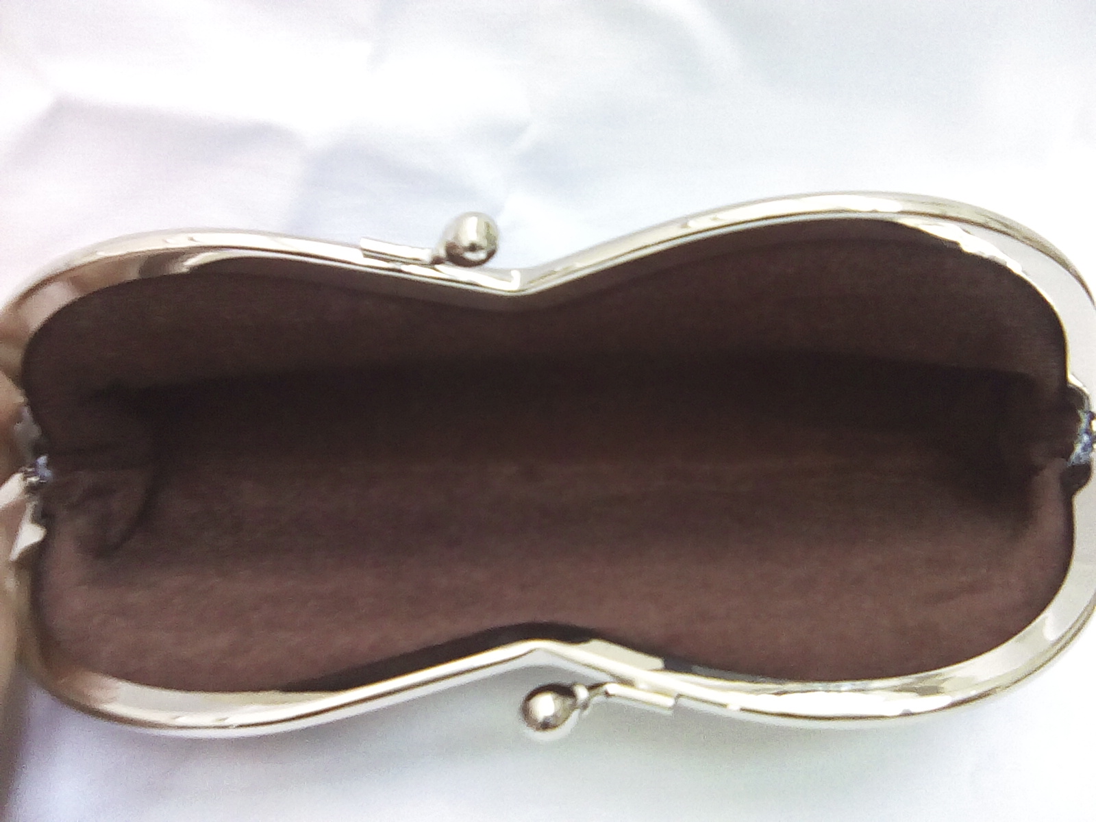 オリジナルデザインのファブリック生地にて、メガネケース型のがま口を作りました。