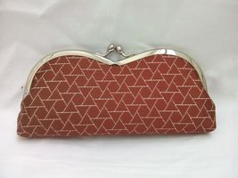 オリジナルデザインのファブリック生地にて、メガネケース型のがま口を作りました。