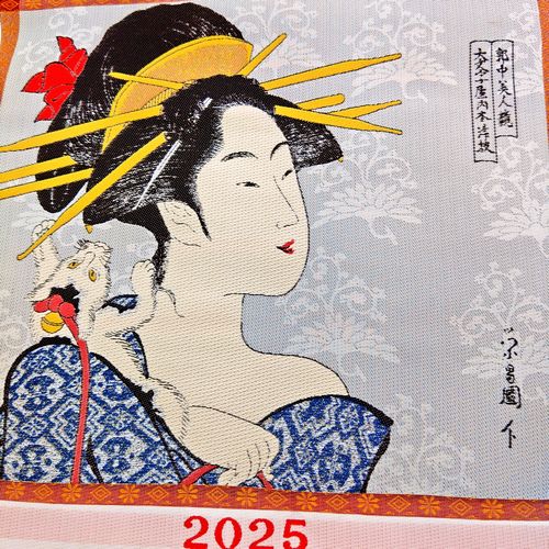 織物で表現された、壁掛けカレンダー 一年間飾った後は数字部分を外して絵画としても楽しめます 伝統的な日本の織物技術で織られる 浮世絵 美人画 伝統画 風景画をお選びください