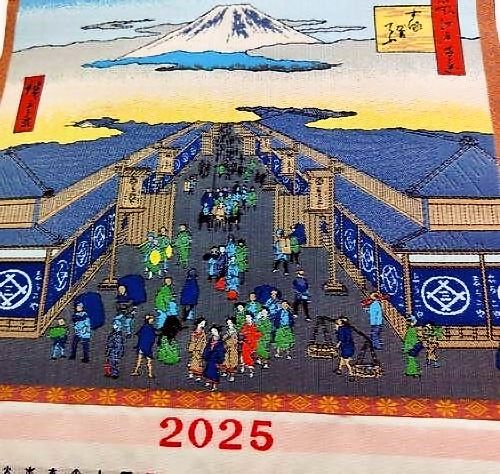 織物で表現された、壁掛けカレンダー 一年間飾った後は数字部分を外して絵画としても楽しめます 伝統的な日本の織物技術で織られる 浮世絵 美人画 伝統画 風景画をお選びください